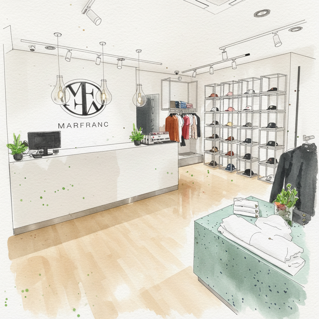 - Espacio Creativo: El núcleo del departamento online de MARFRANC, donde se gestiona el e-commerce y la digitalización de la marca. Aquí también opera el equipo de compras y diseño, desarrollando nuevas colecciones. Además, es el espacio donde se crea el contenido visual y de marketing que define la identidad de MARFRANC.