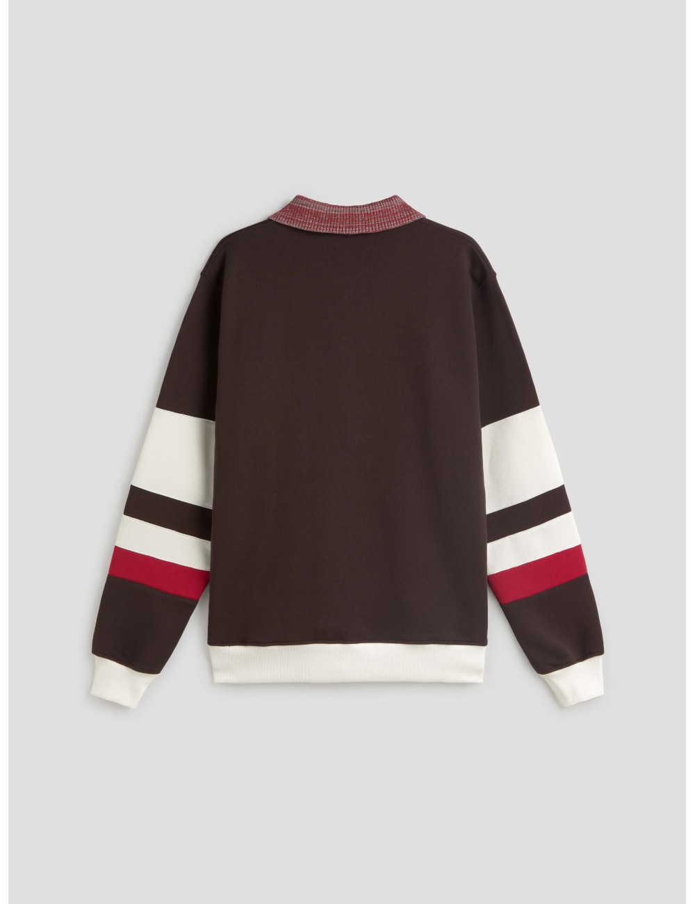 El polo de manga larga LE POLO SPORT de DRÔLE DE MONSIEUR en marrón oscuro combina el estilo retro deportivo con el refinamiento contemporáneo de la marca. Confeccionado en algodón 100%, ofrece una textura suave y resistente. Presenta inserciones en contraste en las mangas, cuello de canalé a rayas y bordado “Drôle” en el pecho, detalles que reflejan el cuidado por la estética y la comodidad. Un diseño que aporta un toque sofisticado y desenfadado al vestuario masculino.