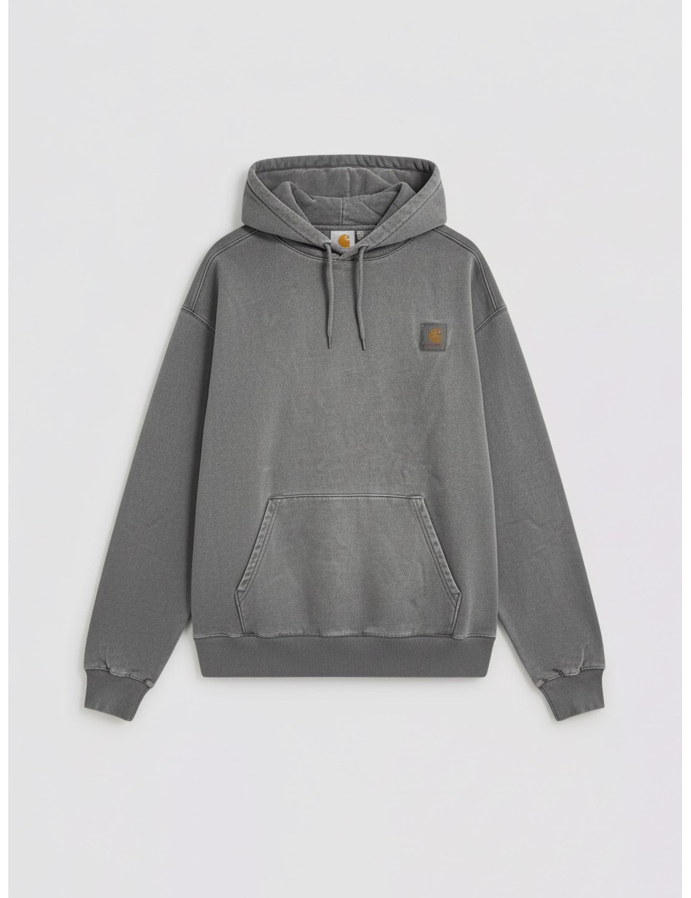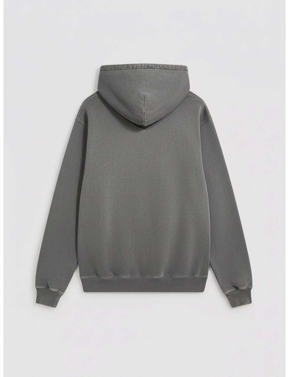 Nacida del legado de trabajo redefinido por Carhartt WIP, la sudadera Hooded Vista Sweatshirt I029523 encarna una fusión perfecta entre utilidad y estética contemporánea. Su diseño "balloon" —ligeramente amplio, con hombros descendidos— ofrece libertad de movimiento mientras conserva una silueta urbana y moderna. El proceso de tinte por prenda (garment-dyed) no solo intensifica el color negro, sino que crea sutiles variaciones tonales que envejecen con autenticidad, evolucionando con cada uso y lavado.