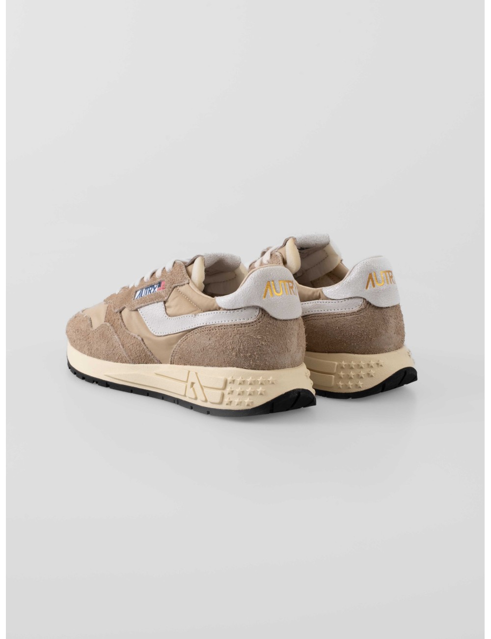 Zapatillas Autry Reelwind Low Man en nylon y ante color White Pepper. Inspiración retro-running con máximo confort y estilo urbano.