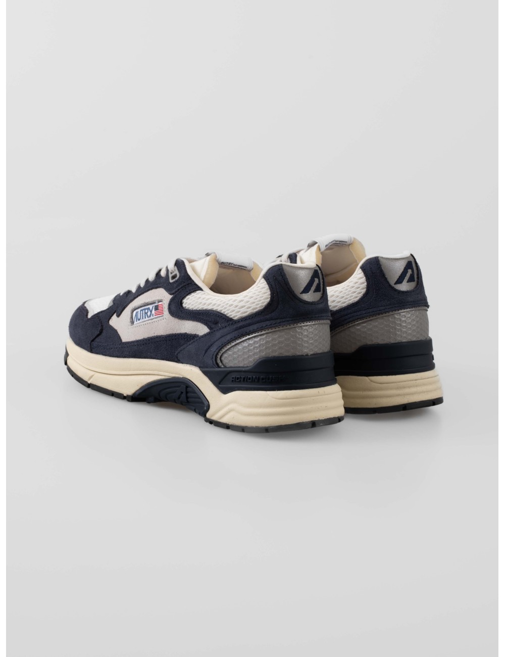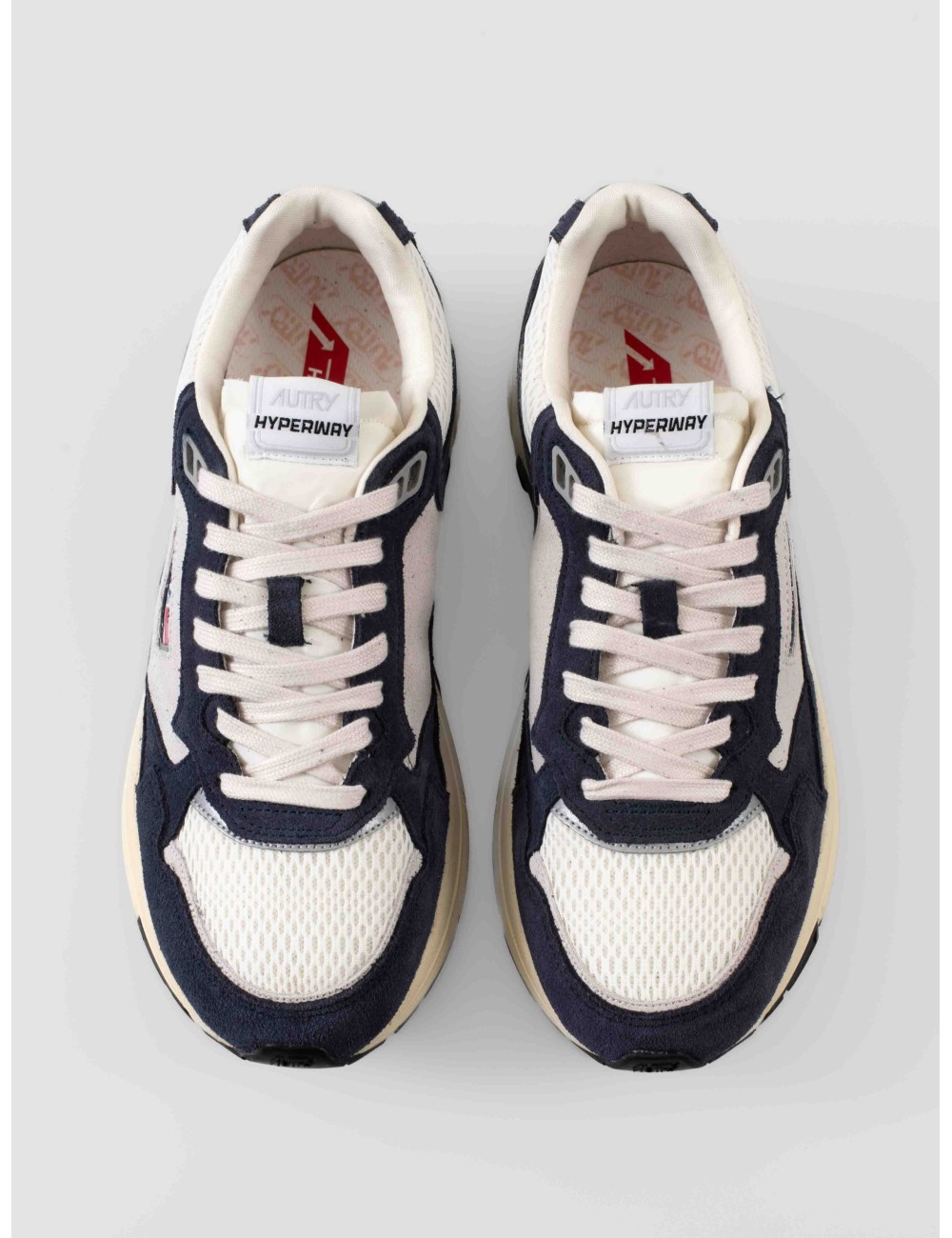 Zapatillas Autry Hyperway Low Man en serraje y malla técnica, color Blue/Silver. Diseño retro-runner con máxima amortiguación y ligereza.