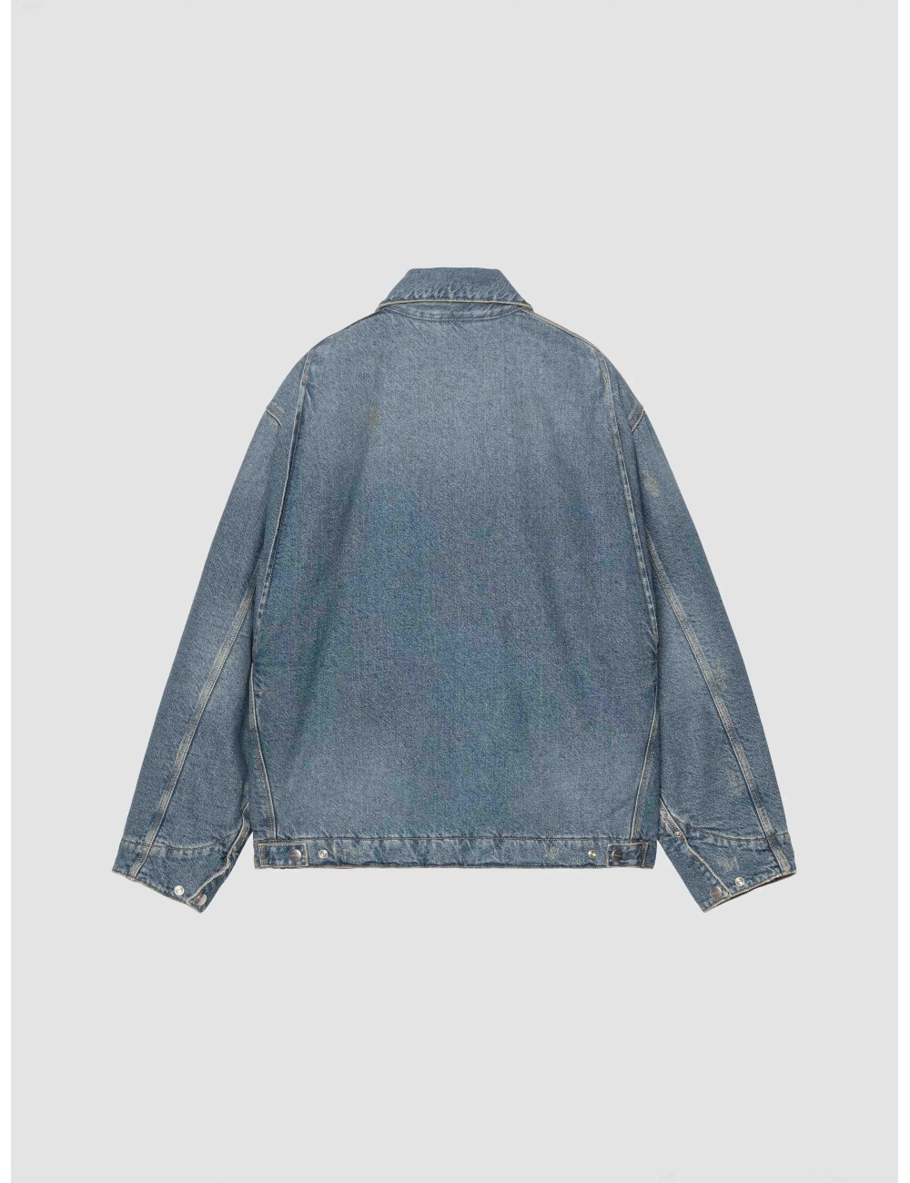 El denim grueso ofrece tacto resistente pero confortable, con forro acolchado que asegura calidez sin volumen excesivo. Los detalles como el cuello de corduroy y costuras triples refuerzan su funcionalidad para el día a día, desde ciudad hasta escapadas.