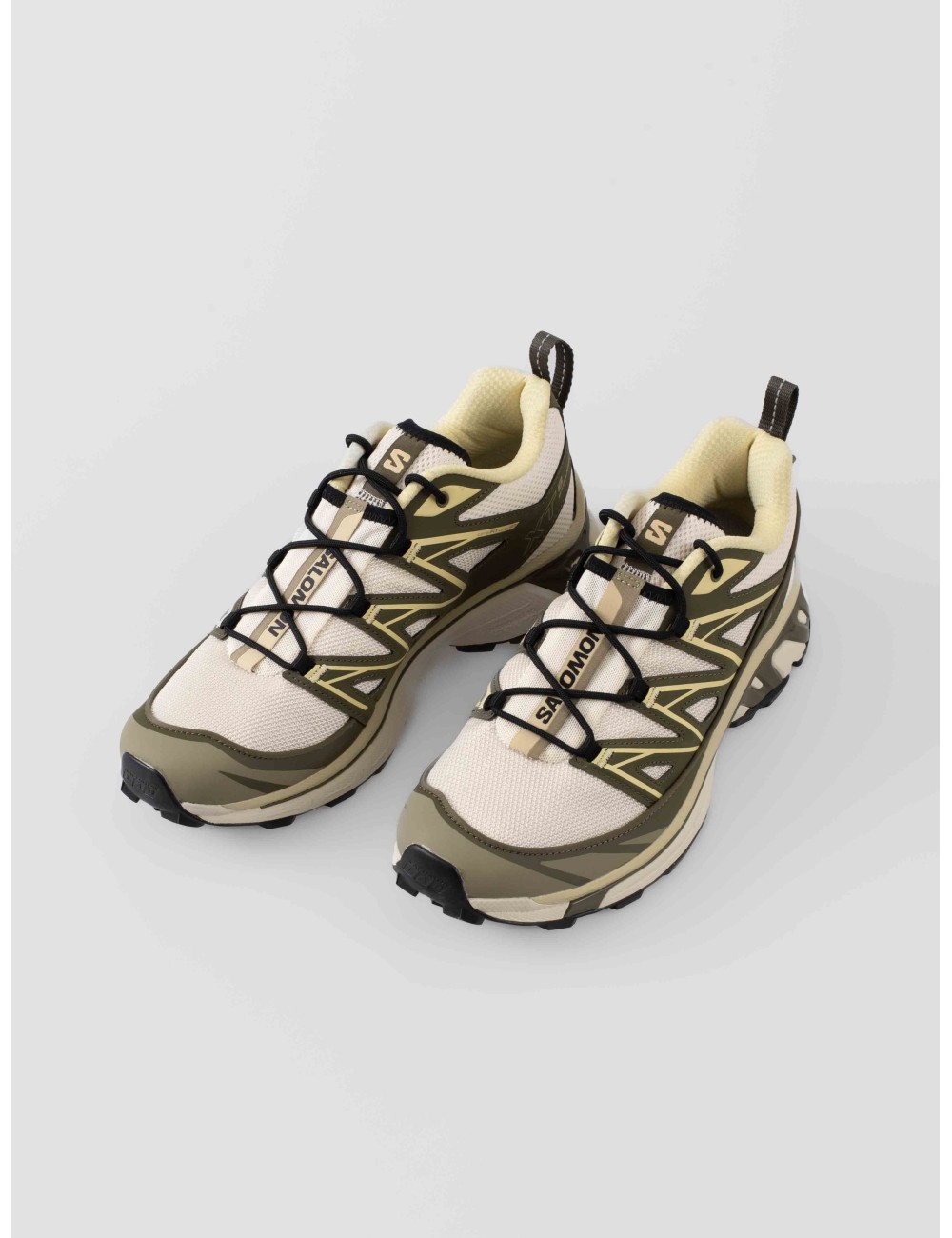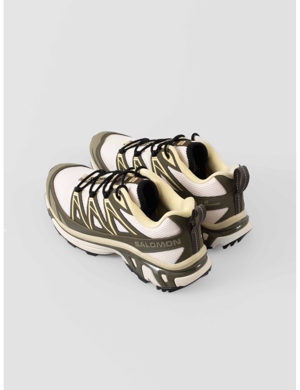El esquema de color Almond Milk / Olive Night / Dusty Yellow combina tonos tierra y neutros que hacen que estas zapatillas se adapten con facilidad a estilos urbanos o looks más funcionales, sin perder el carácter técnico que define la serie XT.