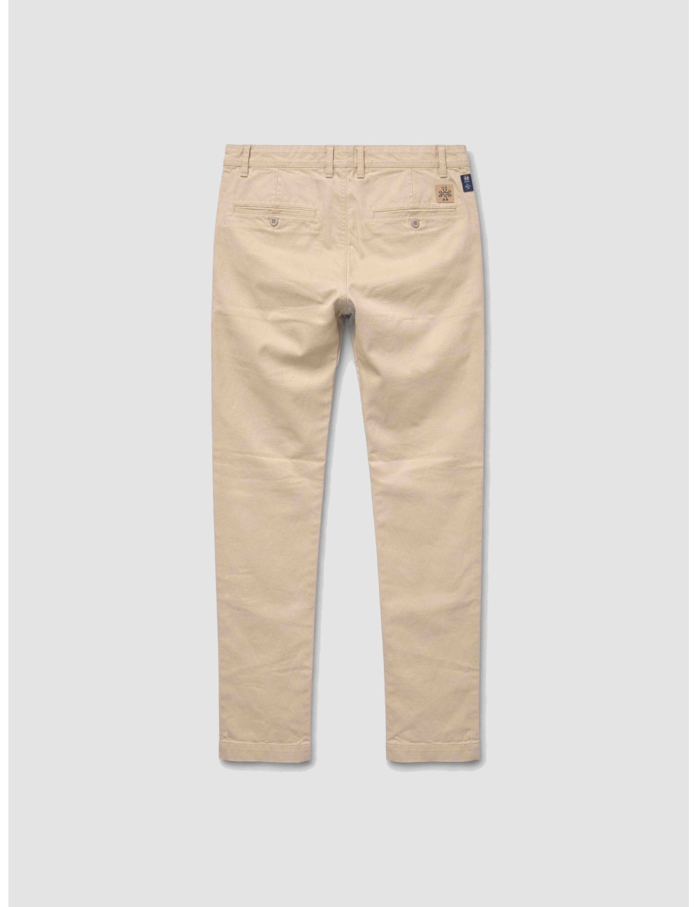 Hemos incorporado este chino Bobby porque encaja con la idea de pantalón claro que funciona tanto con deportivas como con un mocasín discreto. El tono light beige aporta luminosidad sin resultar llamativo y encaja bien en looks de entretiempo y verano, pero también con prendas de punto oscuras en invierno. Nos gusta especialmente que mantenga una línea slim proporcionada, limpia en la cadera y el muslo, que estiliza sin perder comodidad.