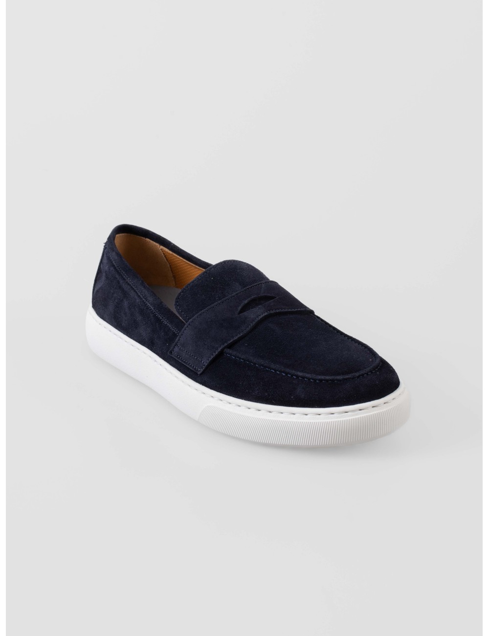 En MARFRANC presentamos los Calce X2507, un zapato tipo loafer masculino en ante color softy bleu, con suela blanca de goma y una silueta limpia pensada para el uso diario.