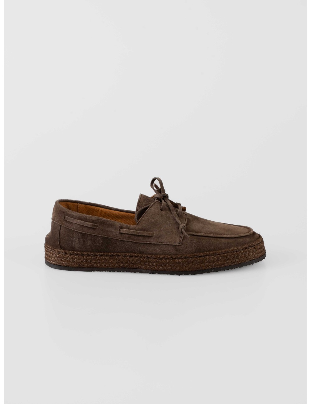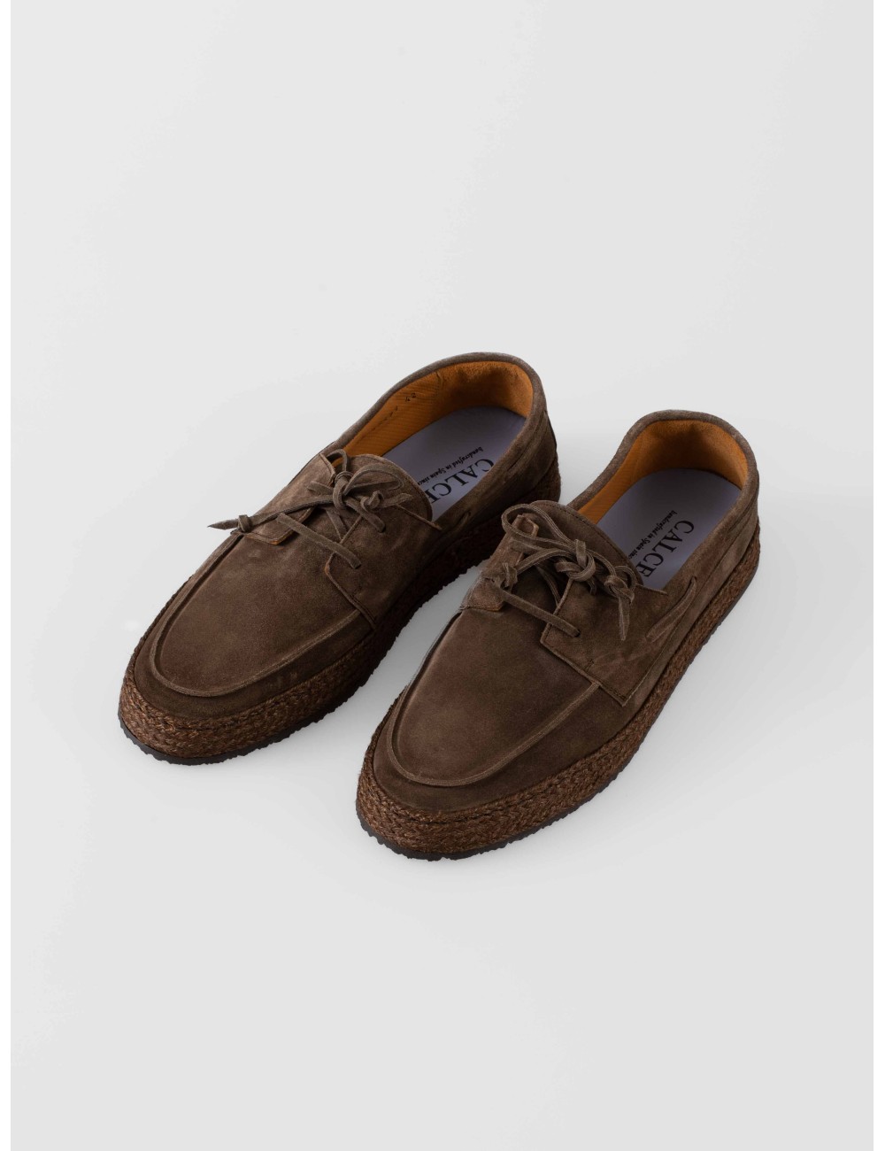 En MARFRANC presentamos los Calce X2499, un zapato masculino con cordones en ante color softy kaki, con suela trenzada de inspiración artesanal y un enfoque claramente casual.