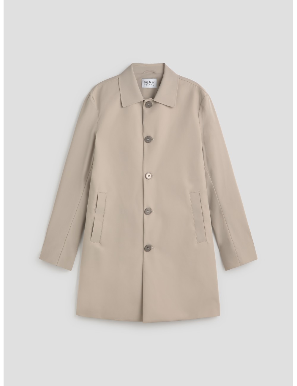 El abrigo DK17-944 de MARFRANC en color Pietra es nuestra interpretación de la gabardina hombre contemporánea, limpia, funcional y fácil de combinar.