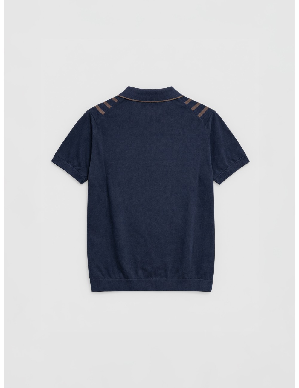 Camicia de punto Gran Sasso x MARFRANC modelo 59135/18066 en color 598 azul marino con rayas marrón en contraste.