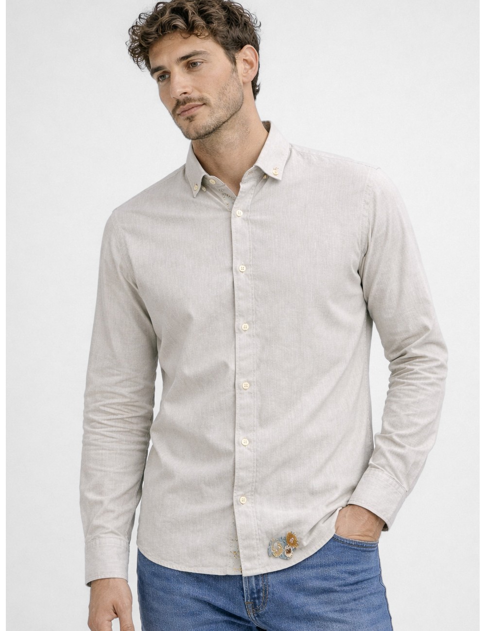 La camisa Tutor591R de Born to Be parte de una construcción tradicional para incorporar matices distintivos a través del detalle. Es una pieza que respeta la estructura clásica de la camisa masculina, enriquecida con pequeños elementos decorativos que aportan identidad.