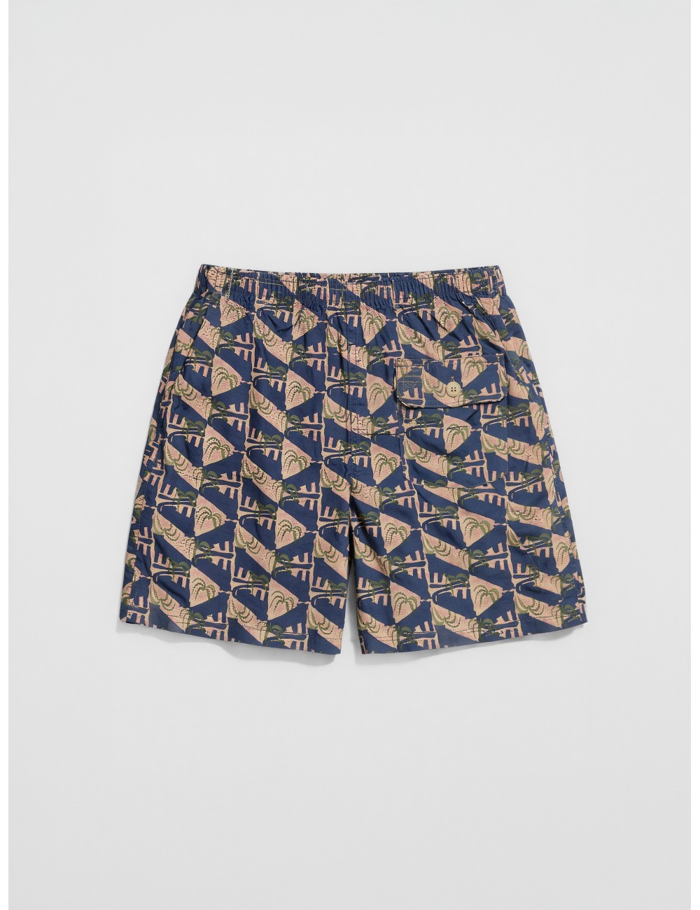 Con diseño icónico y tejido ligero de secado rápido, incorpora cintura elástica con ajuste y estampado geométrico sobre base azul. Una prenda versátil pensada tanto para playa como para uso diario en verano.