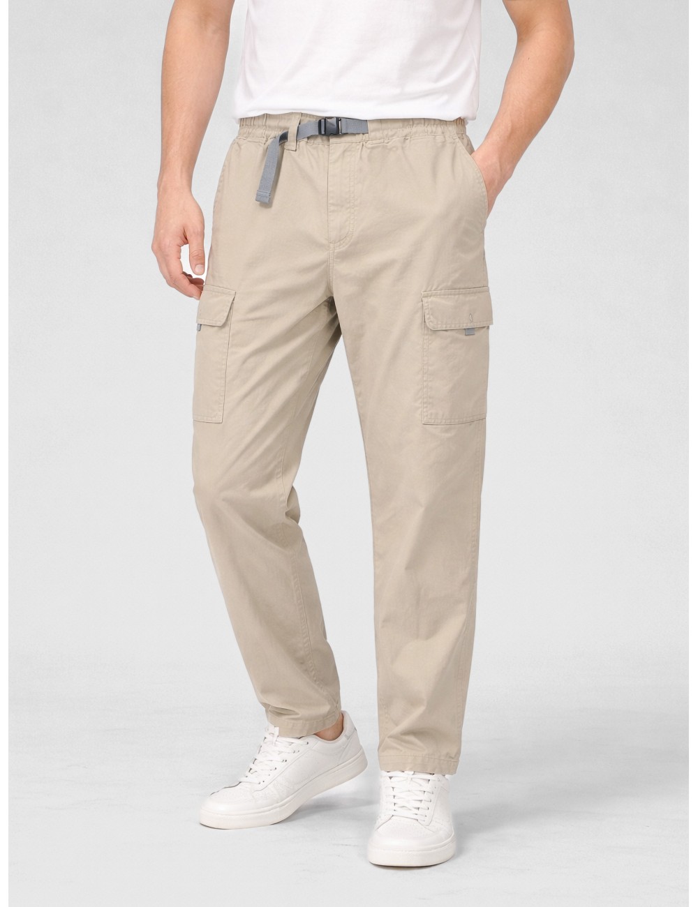 En color Weathered Stone, un tono neutro y suave que encaja con facilidad en cualquier combinación, este pantalón presenta una silueta funcional de inspiración utilitaria. La cintura elástica con cinturón integrado permite un ajuste preciso y cómodo sin necesidad de elementos adicionales, reforzando su carácter práctico.