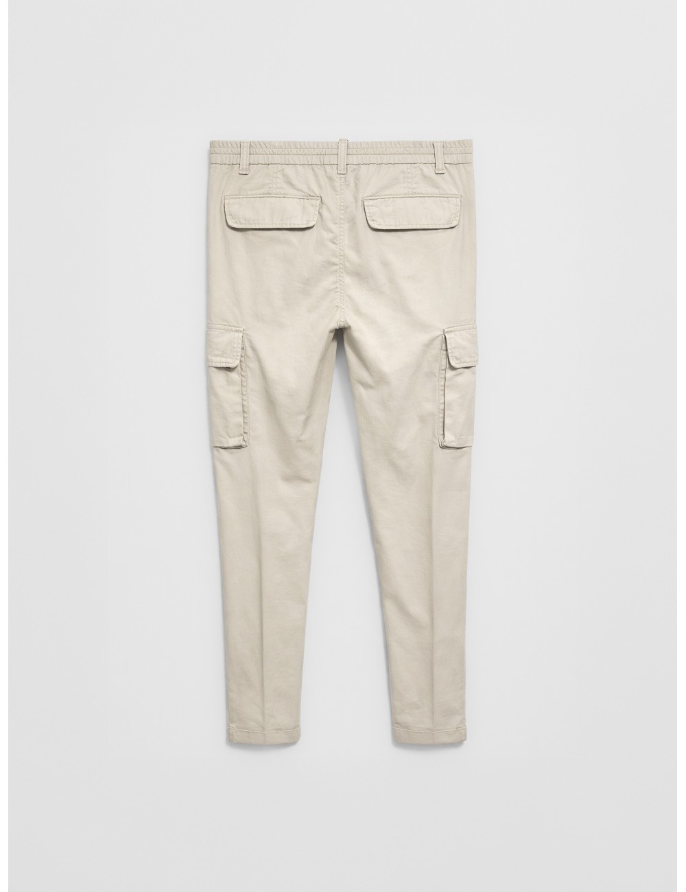 La silueta slim fit estiliza la pierna y aporta una caída limpia, alejándose del volumen tradicional del cargo. Los bolsillos laterales con solapa se integran con proporción precisa, manteniendo funcionalidad sin sobrecargar visualmente la prenda. Los bolsillos traseros con tapeta y el cierre clásico con botón y cremallera completan su construcción.