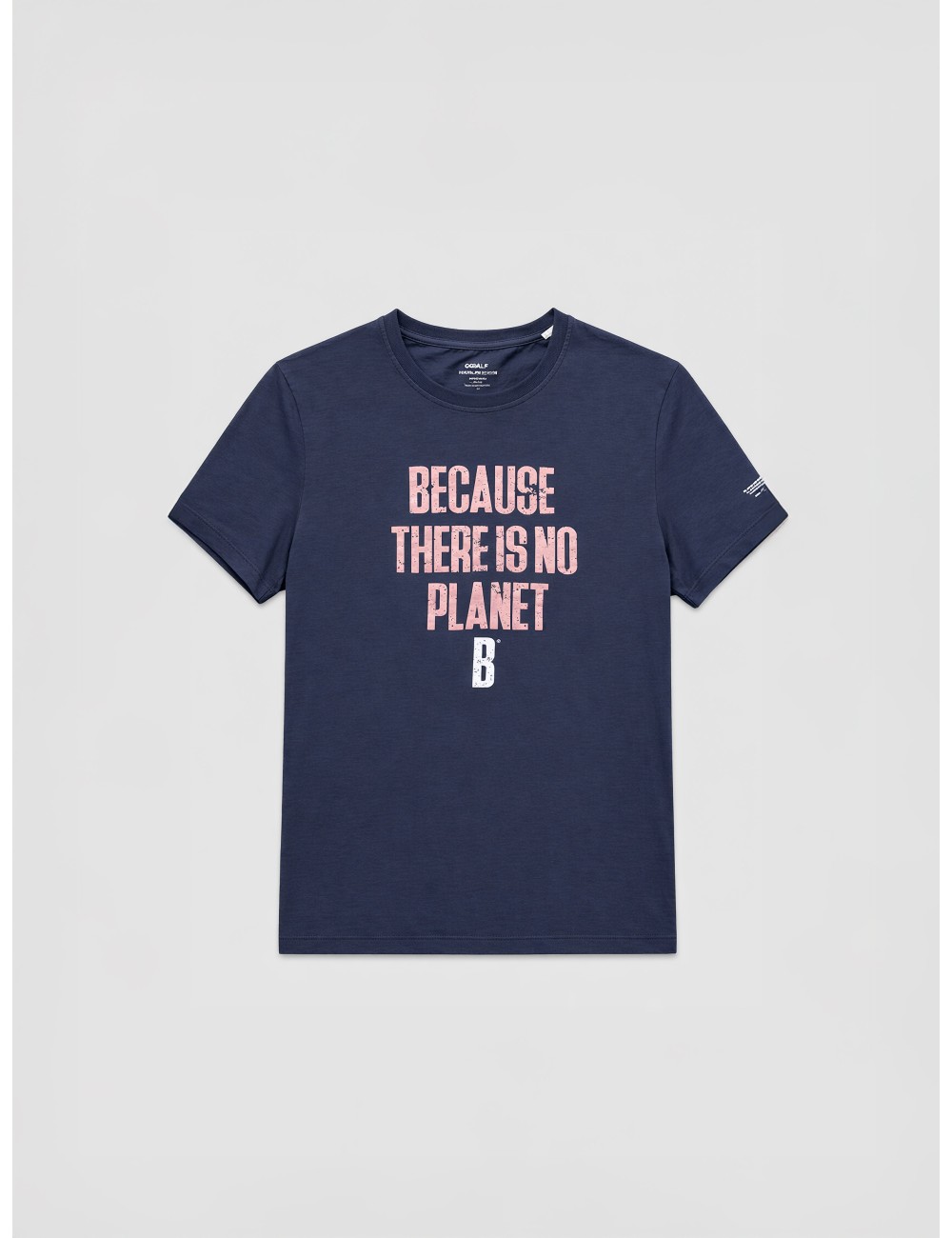Camiseta ECOALF Min T-Shirt Man en color Deep Navy para hombre, confeccionada en algodón reciclado con un diseño icónico de la marca. Destaca por su mensaje frontal “Because There Is No Planet B®”, símbolo del compromiso sostenible de ECOALF.