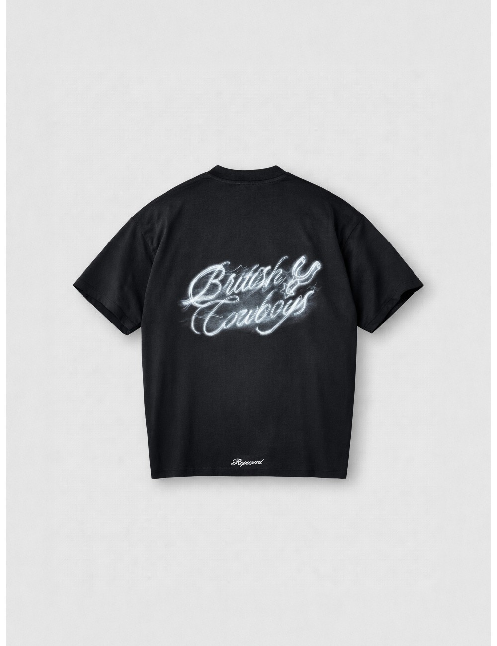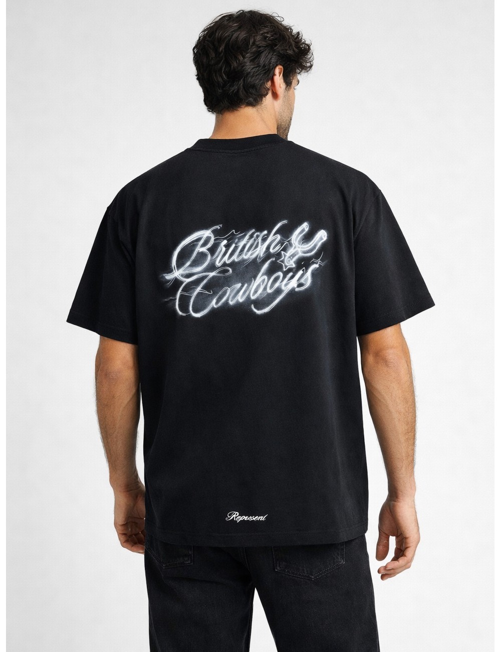 Camiseta Represent British Cowboys Stained Black para hombre en algodón con gráfico distintivo. Diseño de manga corta y cuello redondo en tono negro efecto lavado, con estampado frontal y posterior de inspiración western. Una pieza de carácter urbano que combina estética vintage y narrativa gráfica.