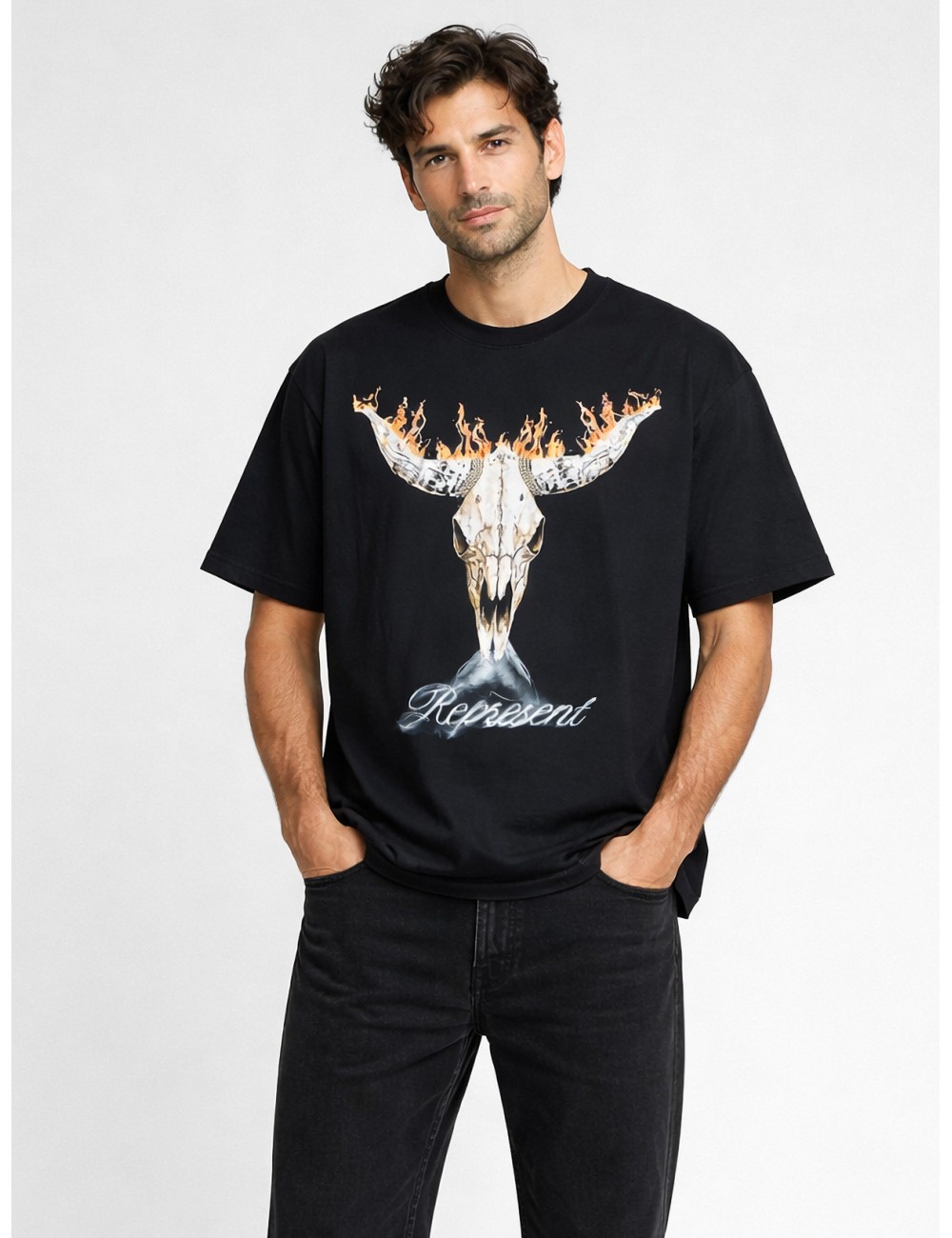 El corte regular facilita una proporción versátil, adecuada para combinar con denim, pantalones cargo o prendas exteriores ligeras. Una propuesta que sintetiza el lenguaje gráfico de Represent con una base esencial y fácil de integrar.