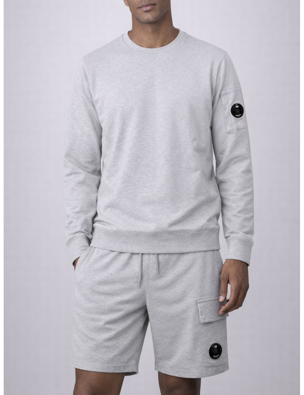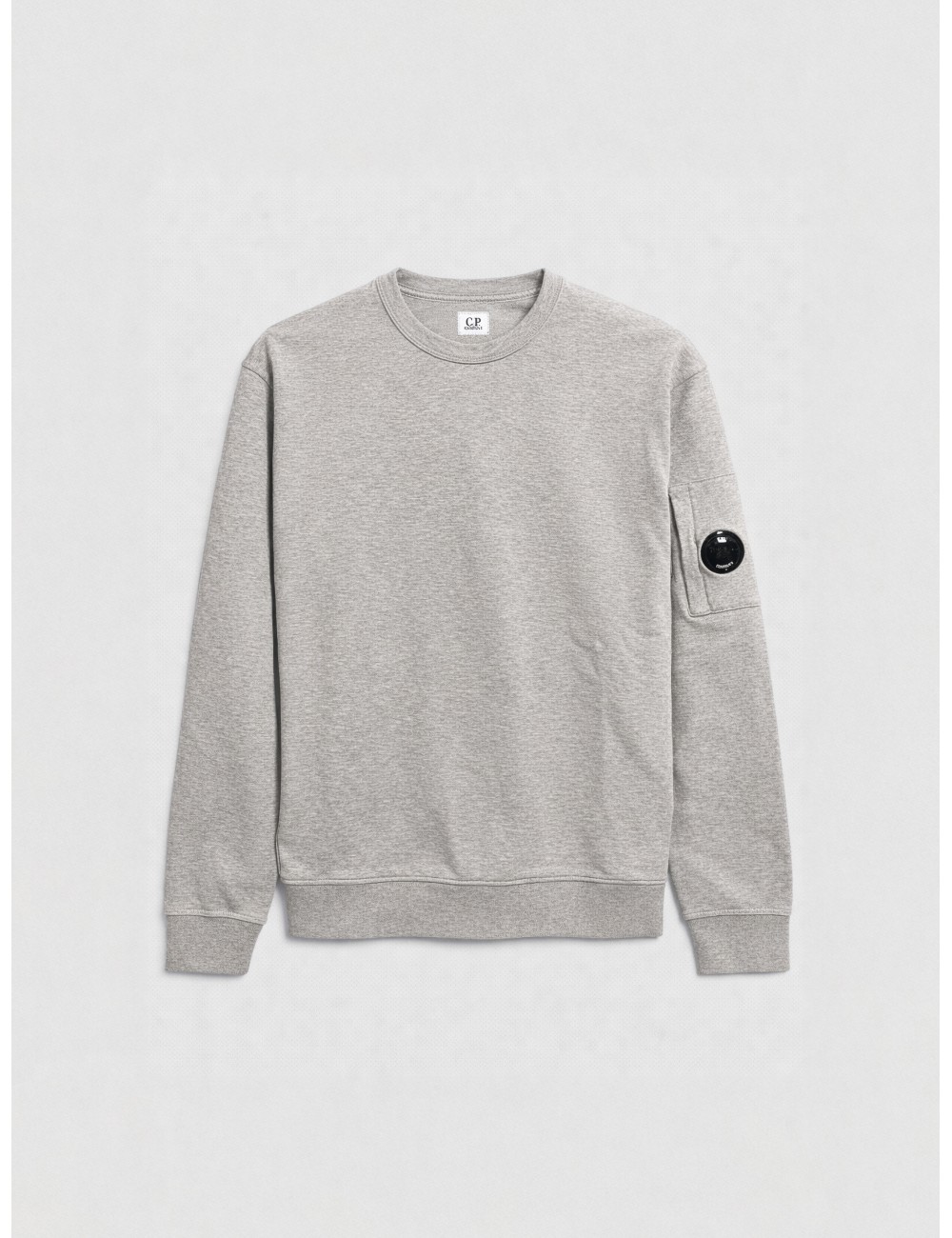 Sudadera C.P. Company Sweatshirt Crew Neck Greystone Melange para hombre en algodón con lente icónica en la manga. Diseño de cuello redondo en tono gris jaspeado, con acabado limpio y construcción en felpa. Una pieza esencial que combina comodidad y enfoque técnico.