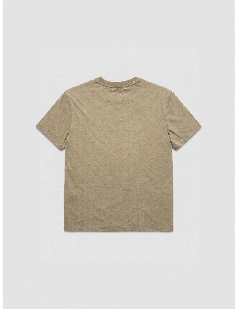 Confeccionada en algodón teñido con acabado lavado, presenta cuello redondo y logotipo bordado tono sobre tono en el pecho. Su textura suave y su aspecto ligeramente desgastado refuerzan la estética vintage característica de la marca.