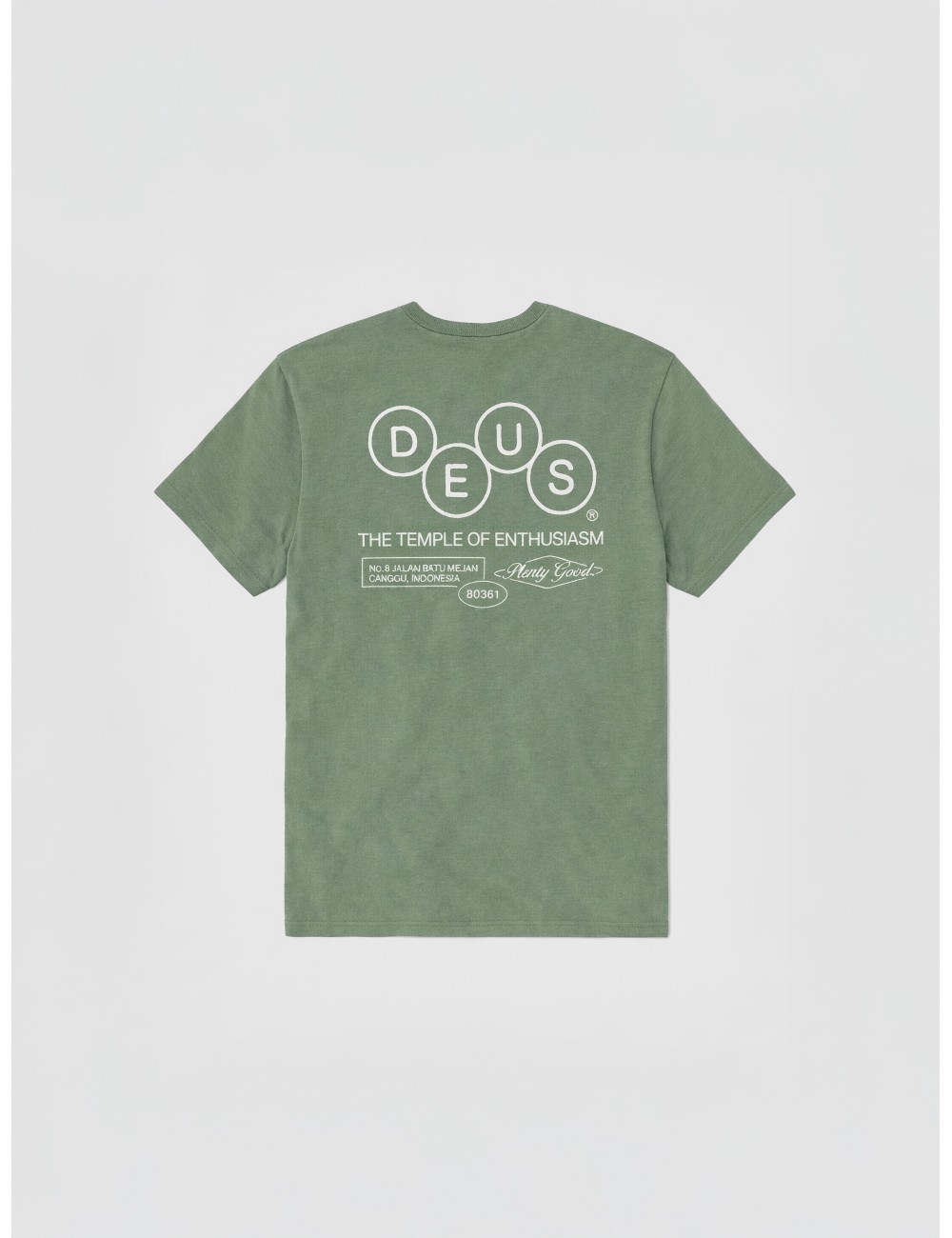 La Mechanism Tee reinterpreta el imaginario gráfico de Deus Ex Machina a través de un diseño limpio y reconocible. En la espalda, el logotipo circular acompañado del lema “The Temple of Enthusiasm” refuerza la identidad de la marca y su vínculo con la cultura custom y el espíritu creativo que la define. En el pecho, un emblema de menor escala mantiene el equilibrio visual.