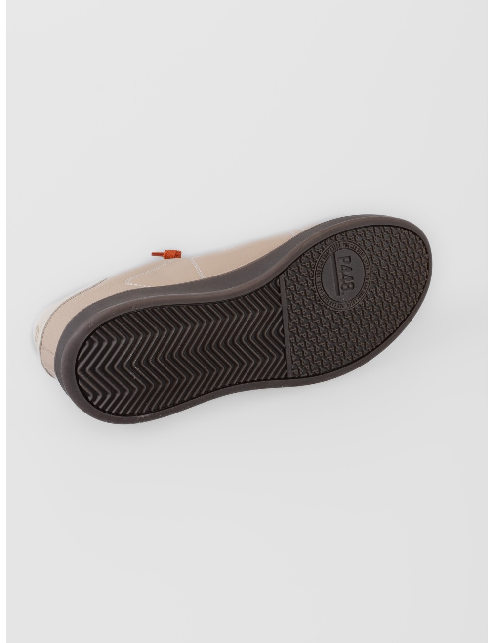 La suela de goma acompaña esa estética compacta con una base estable y discreta. Su perfil bajo favorece un uso natural en el día a día y encaja especialmente bien en combinaciones relajadas, urbanas o de viaje. Es una zapatilla pensada para quienes valoran la sencillez bien resuelta, con suficientes matices para aportar personalidad sin caer en el exceso.