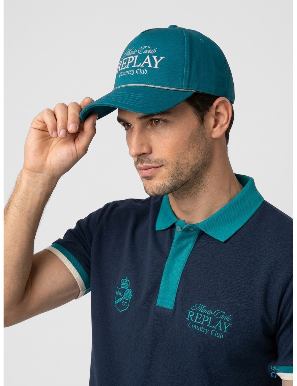 Por su lenguaje visual, funciona especialmente bien con polos, camisetas lisas, bermudas, sobrecamisas ligeras o prendas inspiradas en el tenis. También encaja en conjuntos urbanos más neutros, donde aporta un contrapunto gráfico y cromático sin romper la armonía. La referencia al evento de Montecarlo con Replay refuerza ese equilibrio entre deporte, verano y elegancia relajada, y convierte esta gorra en una pieza distintiva dentro de una propuesta casual contemporánea.
