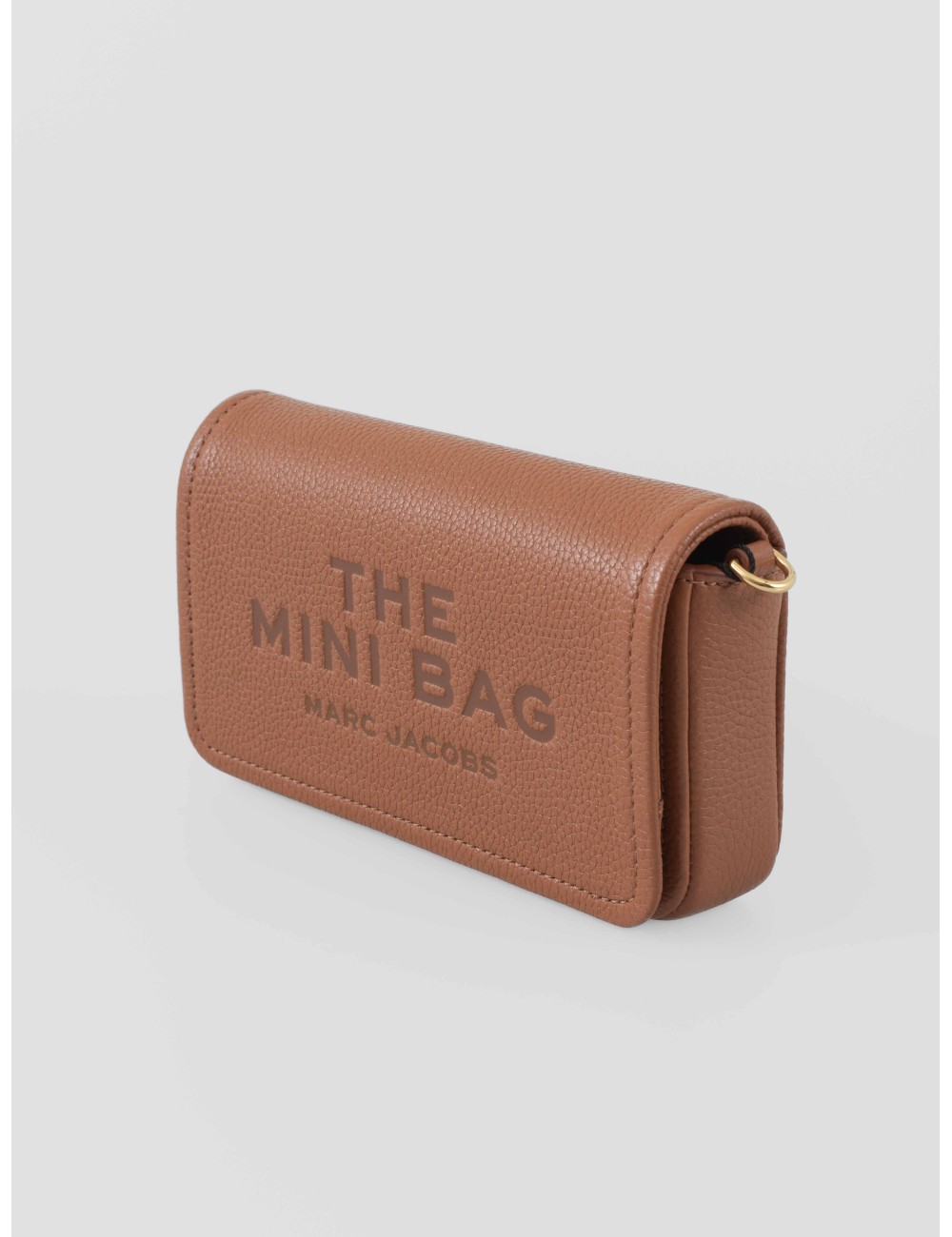 Bolso The Mini Bag de Marc Jacobs en tono Argan Oil, confeccionado en piel granulada premium. Diseño compacto y estructurado, con correa ajustable y logo frontal en relieve. Un esencial versátil para el día a día.