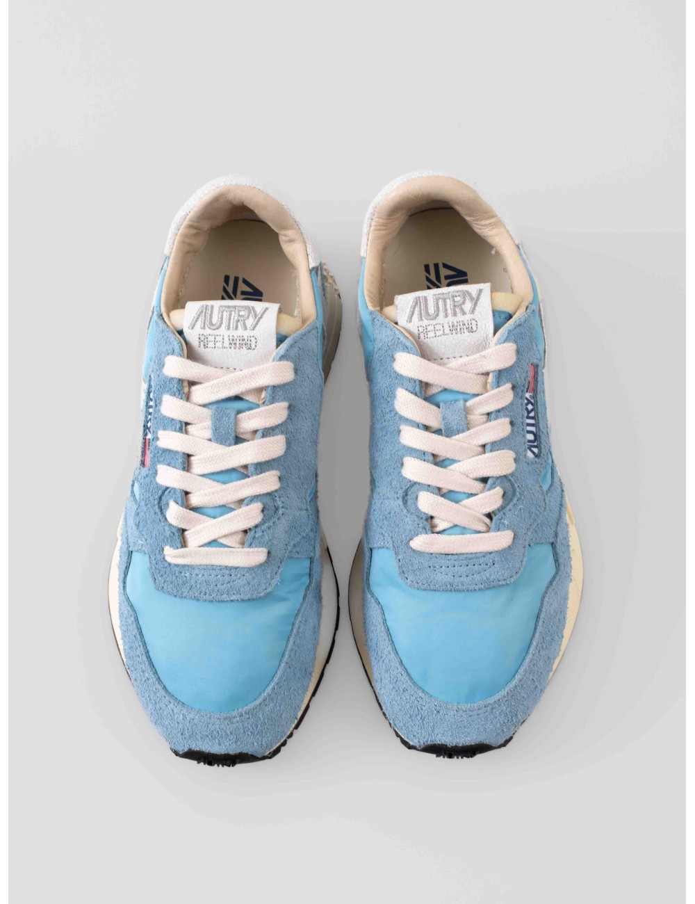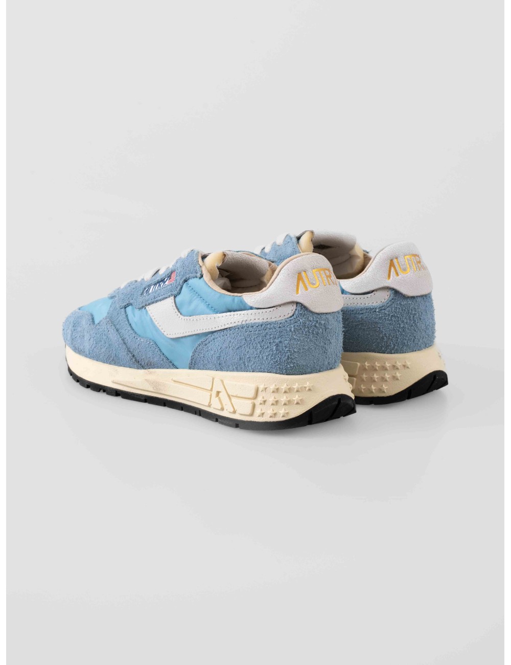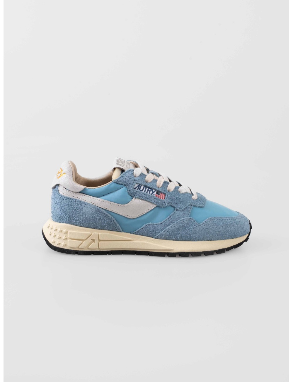 Zapatillas Autry Reelwind Low para mujer en color White/Forget, confeccionadas en nylon ligero y ante efecto crackle. Un diseño retro-running con personalidad, cómodo y versátil para el día a día.