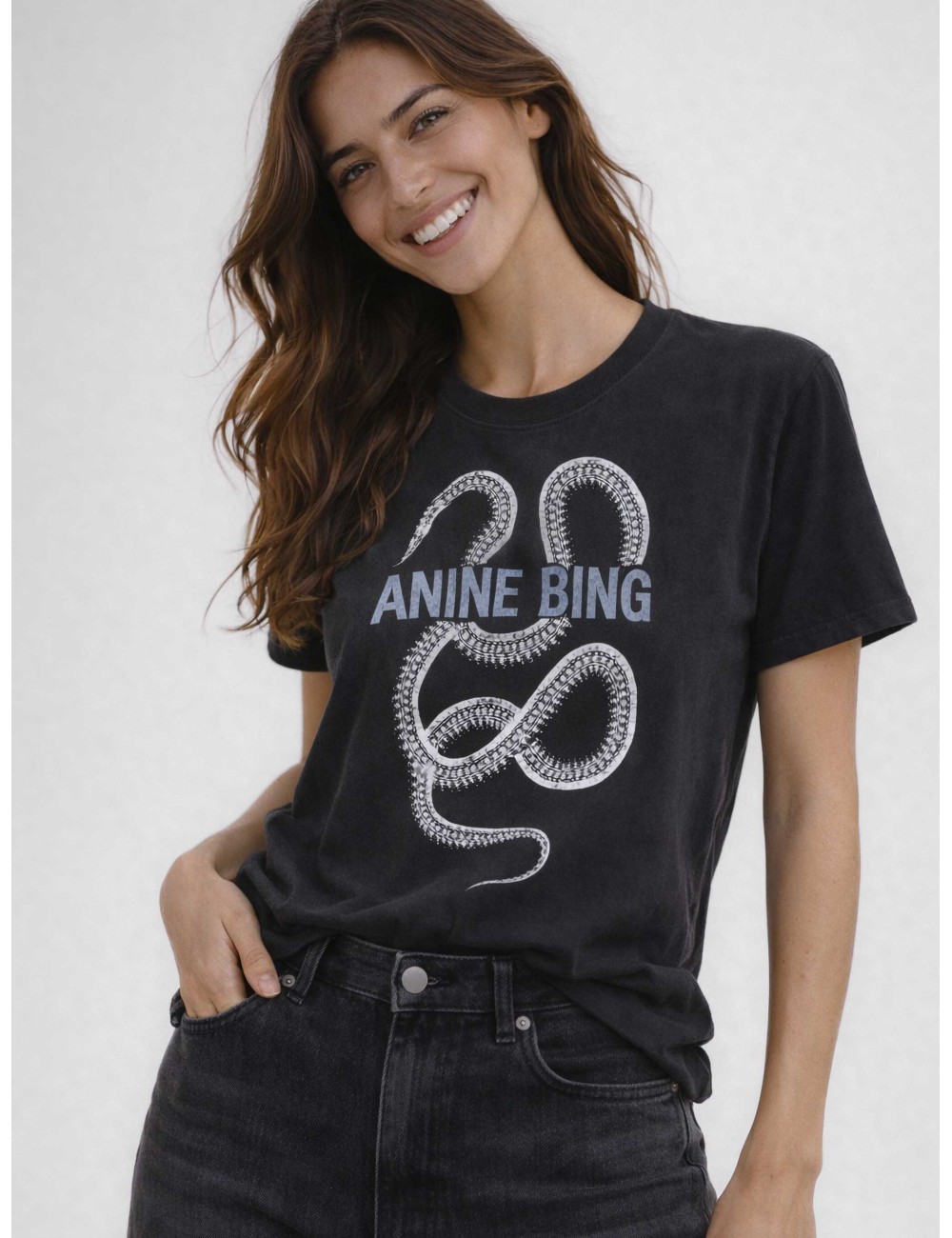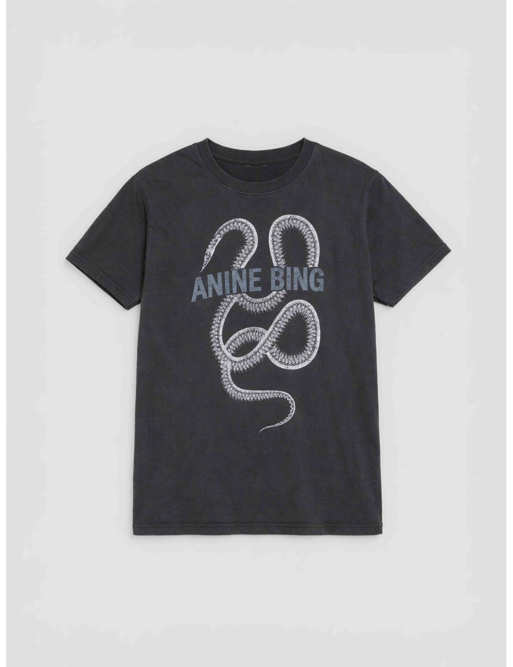 Color negro lavado con gran print frontal de serpiente y logo ANINE BING.