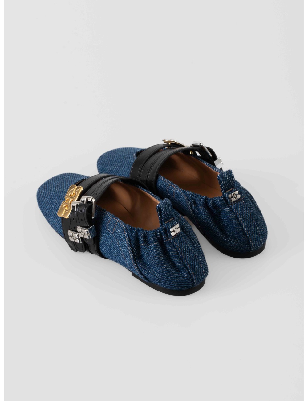 En MARFRANC presentamos las Ganni Bailarinas Sue Triple Denim en color dark blue vintage, unas bailarinas de denim con múltiples hebillas y silueta plana que combinan un gesto casual con detalles sofisticados.