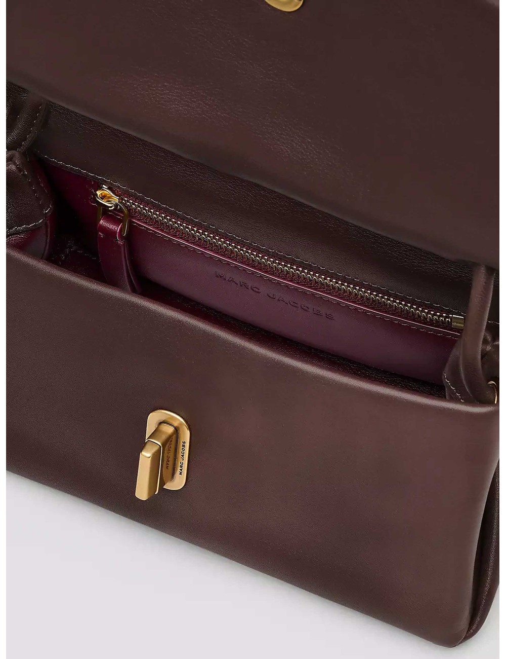 Hemos elegido esta Mini Dual Bag Ganache porque representa muy bien la línea más depurada de Marc Jacobs: proporciones pequeñas, herrajes cuidados y un diseño que funciona tanto de día como de noche. El color ganache, un marrón cacao profundo, aporta calidez y hace que el dorado cepillado destaque sin resultar llamativo.