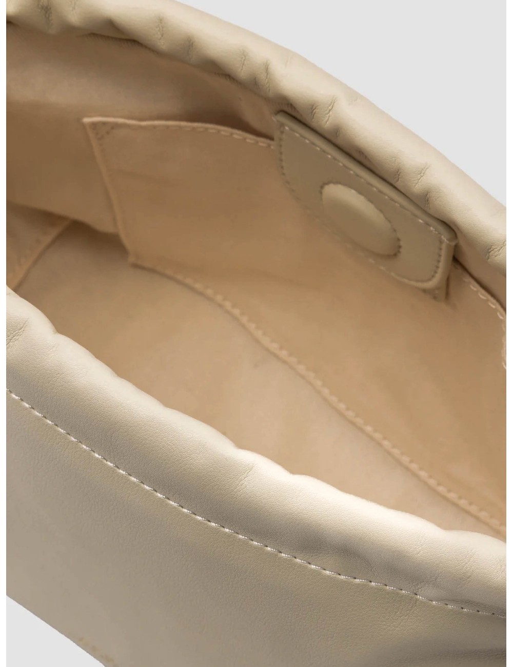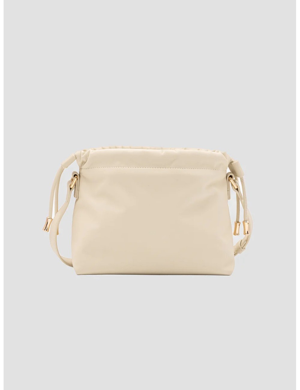 El material reciclado con aspecto piel ofrece tacto mate y flexible, con peso ligero que favorece la caída natural del drawstring, y el bolsillo interior organiza lo esencial sin complicaciones. La correa ajustable permite alternar entre hombro y crossbody según el uso.