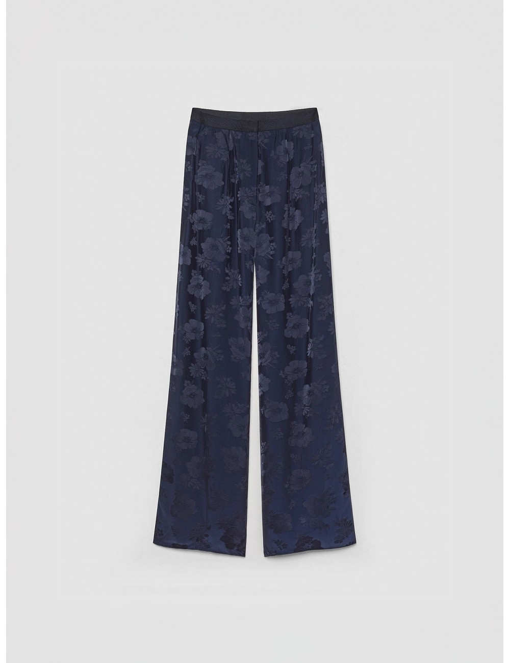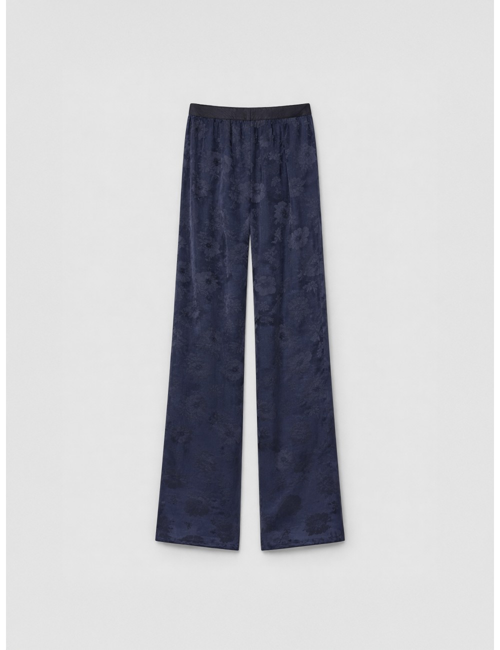 En MARFRANC incorporamos los fluid jacquard bouquet trousers de forte_forte para mujer en Notte, pantalón ancho jacquard con ramilletes florales que fluye con gracia italiana.