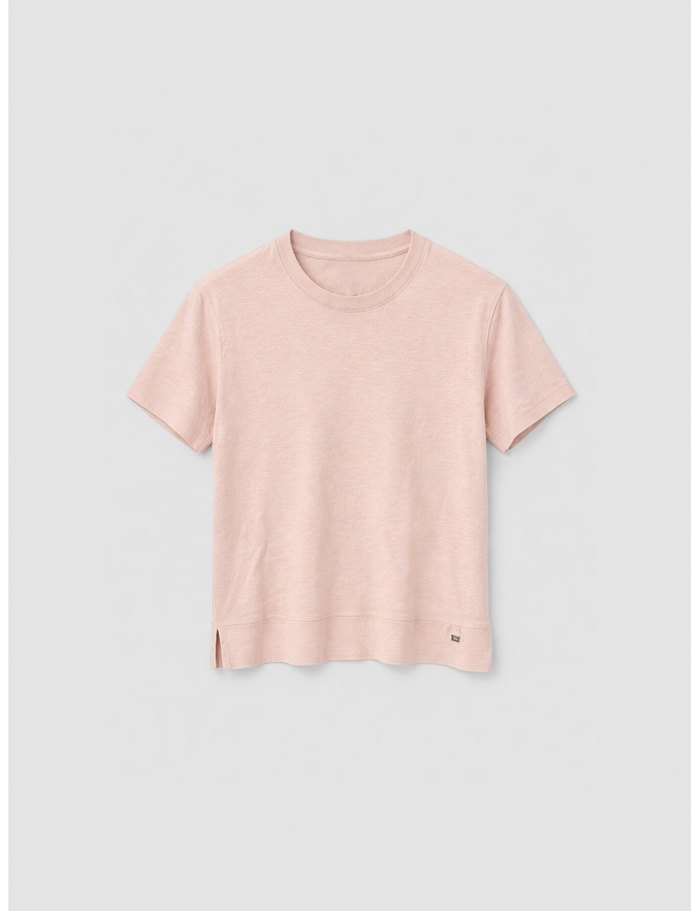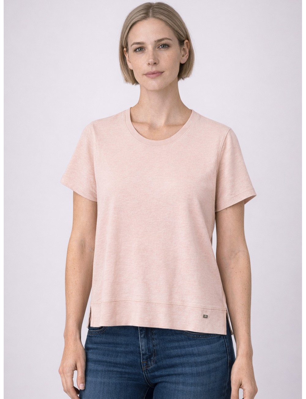 El lyocell aporta tacto noble y breathability, con cipria rosado polvoriento versátil para capas o solos. Su estructura mantiene forma tras lavados.