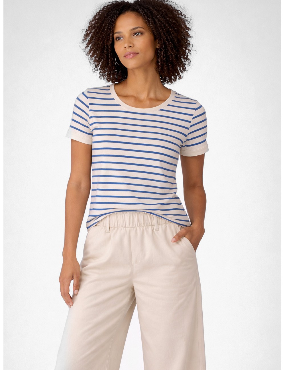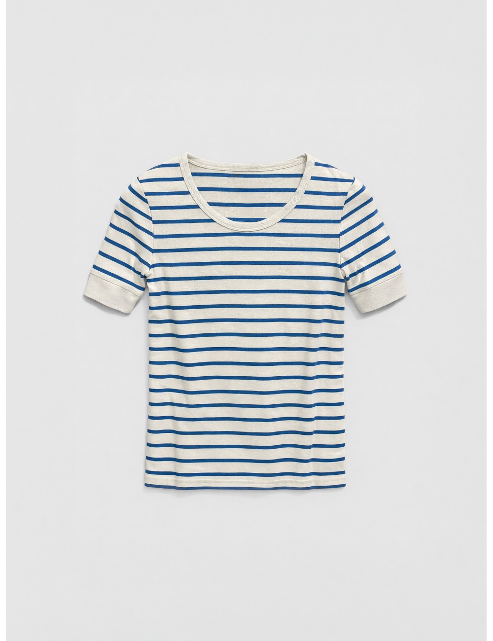 Su corte ajustado realza la silueta femenina sin perder comodidad, convirtiéndola en una prenda ideal para el día a día. El cuello redondo y las mangas cortas con acabado limpio refuerzan su estética depurada y atemporal.