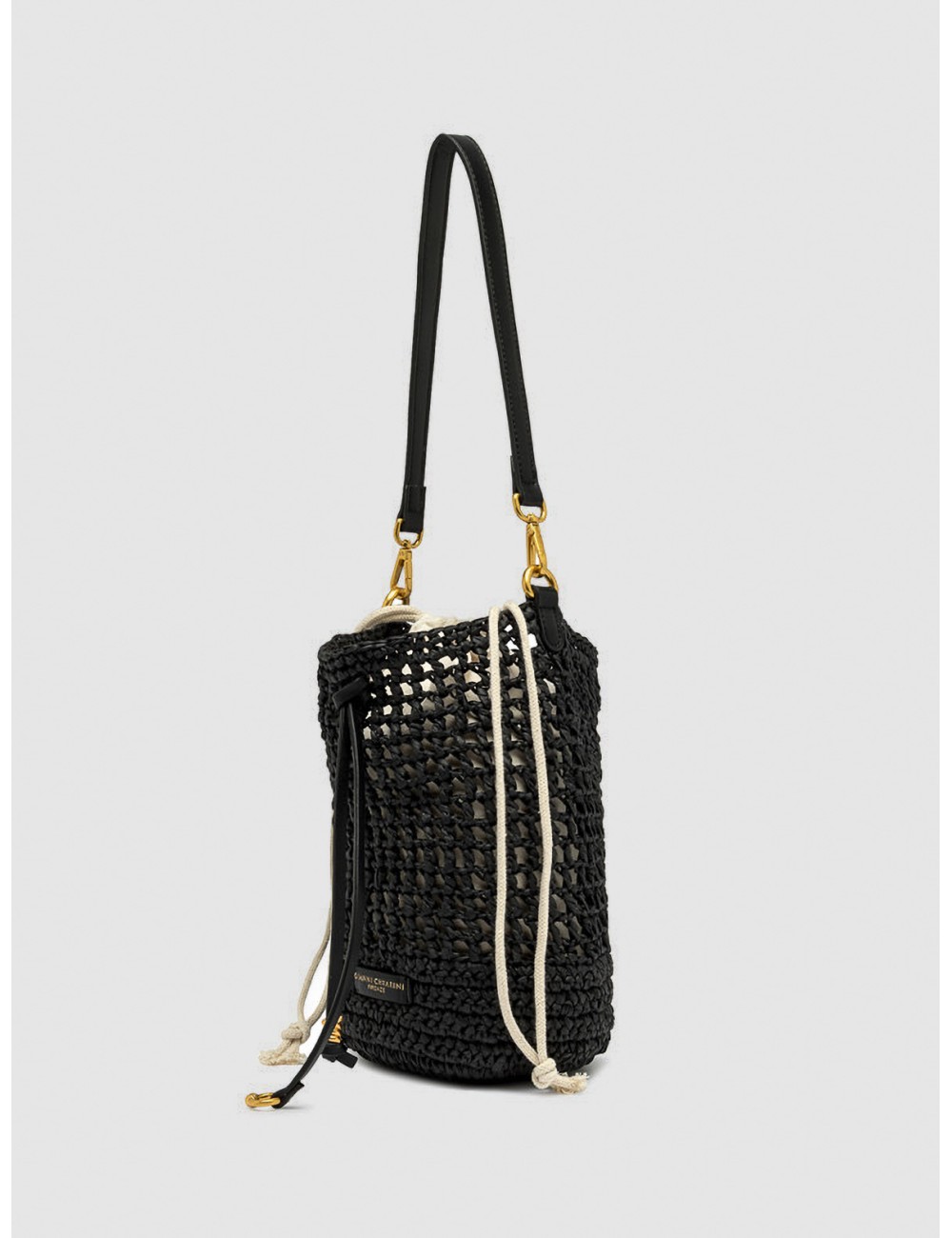 Bolso Gianni Chiarini Firenze Nefeli Bag en color negro con diseño tipo bucket y tejido trenzado.
