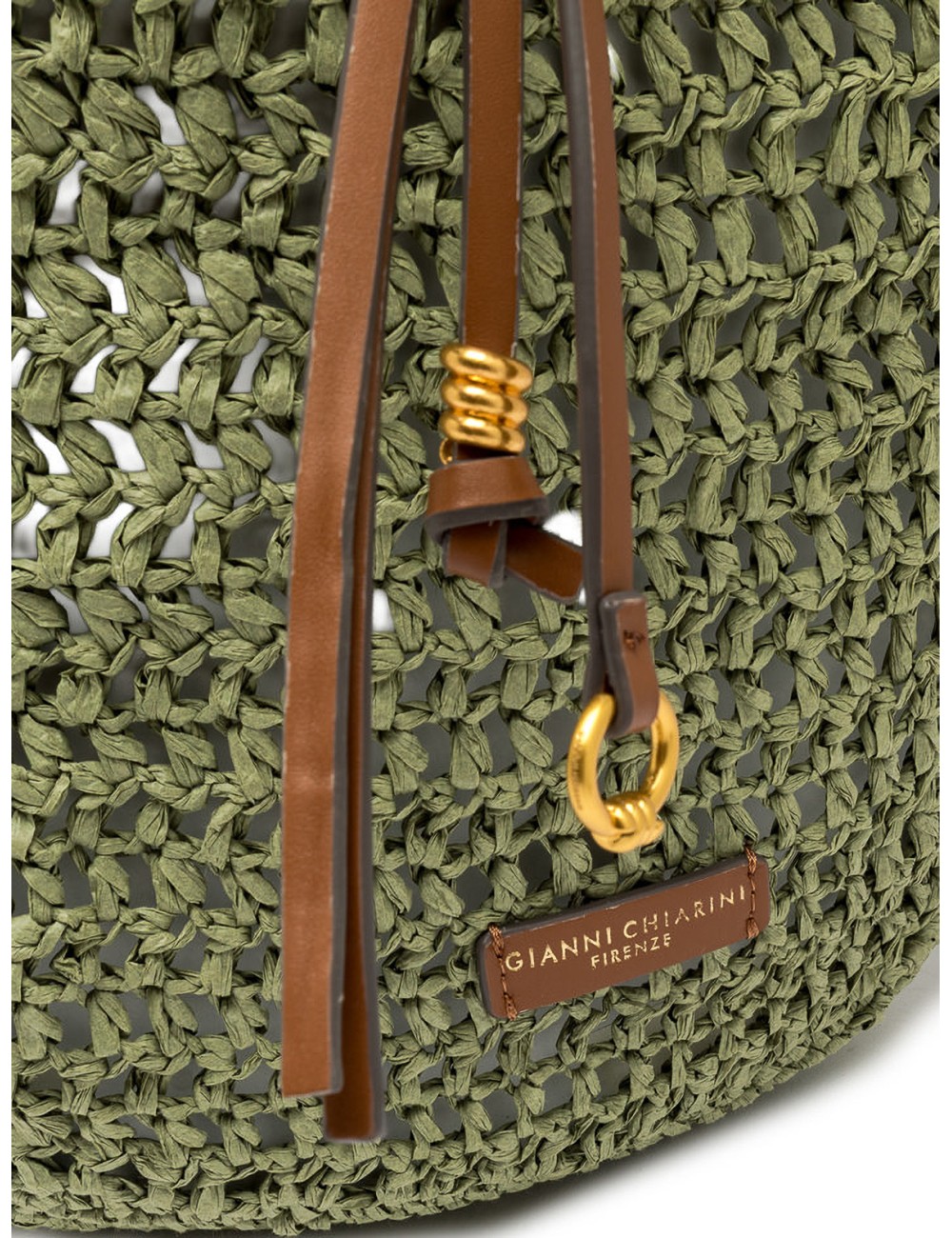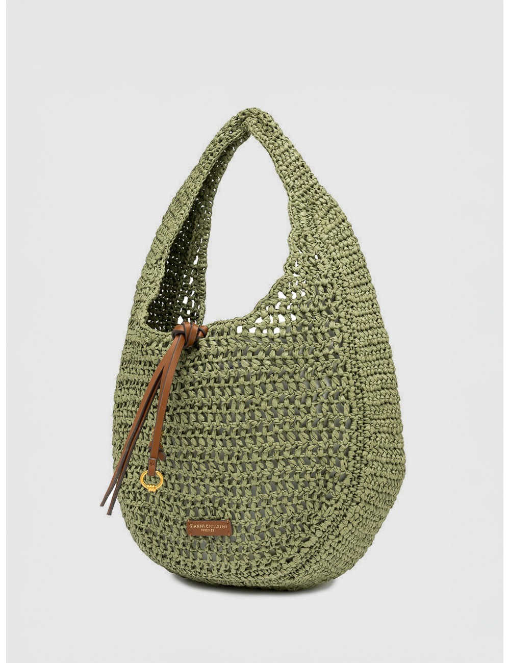 Bolso Gianni Chiarini Firenze Nefeli Bag en color Taiga con diseño hobo en rafia trenzada.