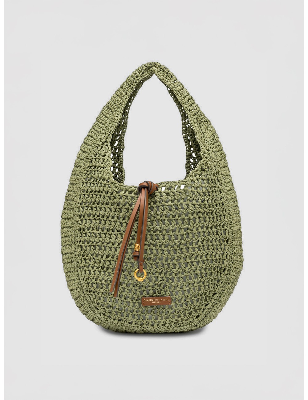 Bolso Gianni Chiarini Firenze Nefeli Bag en color Taiga con diseño hobo en rafia trenzada.