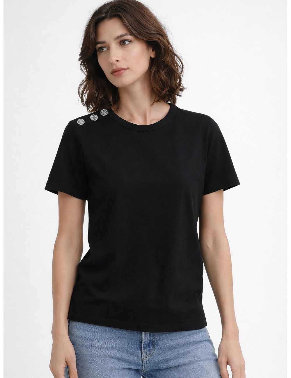 La camiseta Elmer refleja el enfoque desenfadado y femenino de ba&sh a través de una prenda esencial reinterpretada con proporciones actuales. Su tono Carbone, profundo y fácil de combinar, aporta carácter sin perder neutralidad, funcionando como alternativa al negro clásico.
