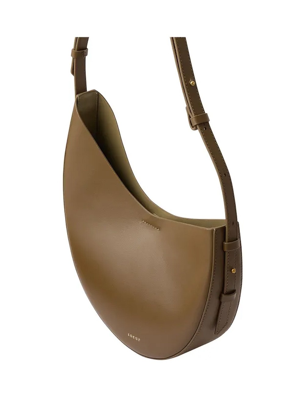 Bolso Soeur Wino para mujer en color bronze con silueta curva tipo hobo. Confeccionado en piel lisa, presenta una estructura limpia y continua con asa ajustable integrada. Su forma orgánica y volumen suave definen una pieza minimalista, pensada para un uso cotidiano con un enfoque funcional y equilibrado.