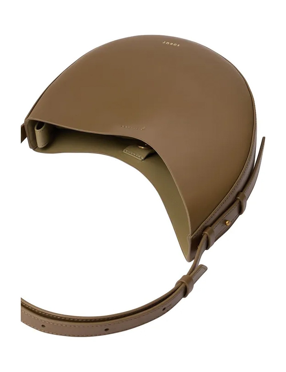 El modelo Wino de Soeur Paris se construye a partir de una línea fluida que recorre todo el bolso, generando una silueta continua sin cortes visuales. La piel lisa refuerza esta sensación, aportando una superficie uniforme donde la forma cobra protagonismo. El volumen, ligeramente estructurado pero flexible, permite que el bolso se adapte al cuerpo al llevarlo al hombro.