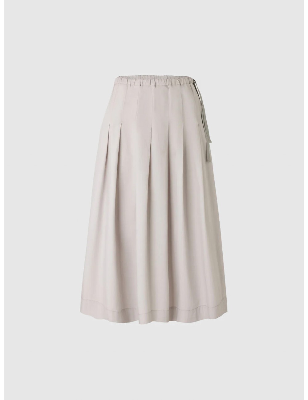 La falda Soeur Paris Amalia en color gris clair destaca por su volumen amplio y su caída limpia, definida por pliegues suaves y una cintura elástica con lazo lateral. El tono gris claro refuerza la lectura serena de la prenda y subraya una silueta midi de líneas depuradas, pensada para un uso versátil y natural.