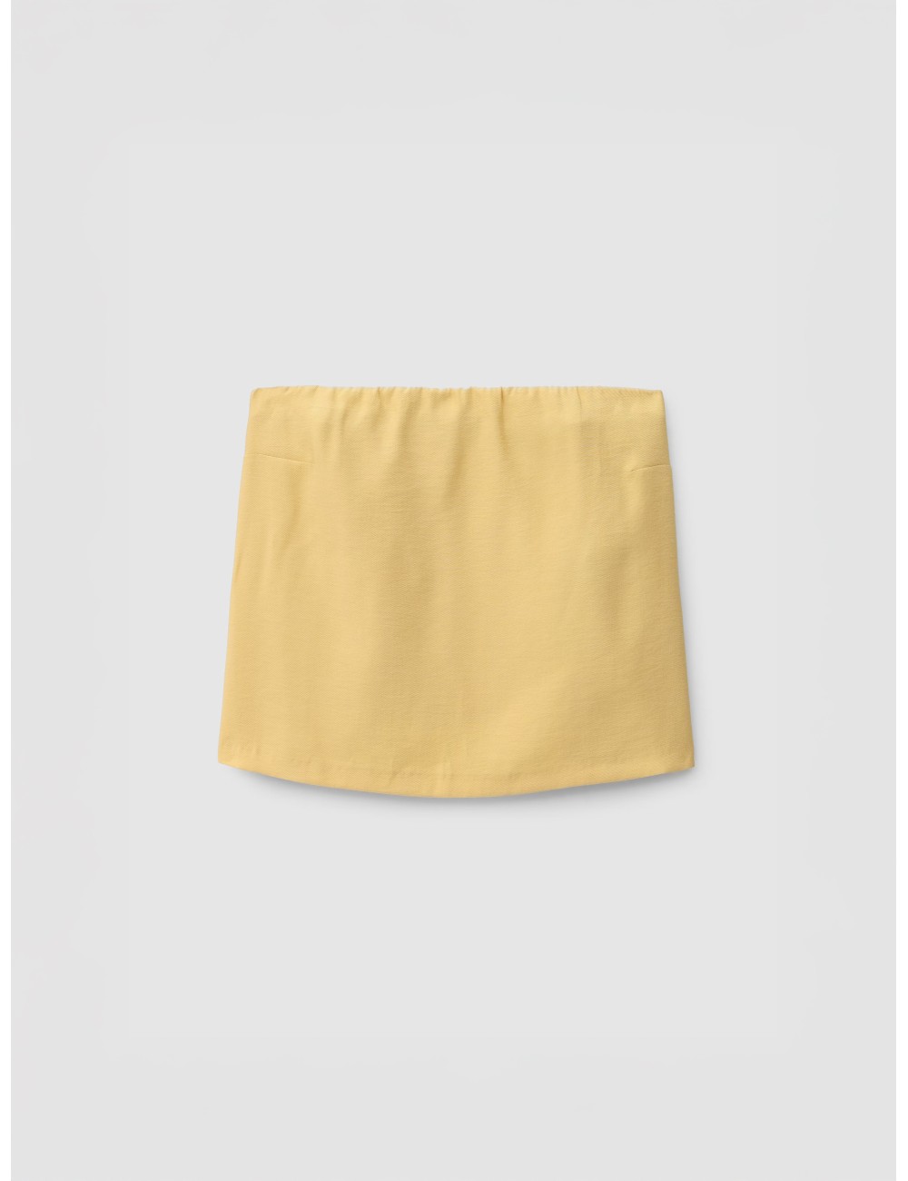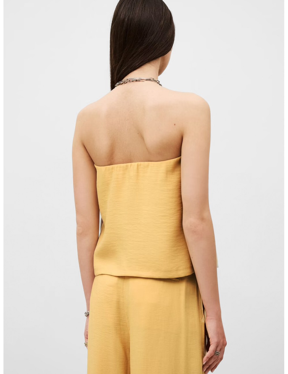 Bustier ba&sh Deborah en color Paille con escote recto, diseño palabra de honor y caída fluida. La silueta limpia deja todo el protagonismo al color amarillo suave y al acabado satinado, que aporta luz sin exceso de brillo. Es una pieza ligera y depurada, pensada para estilismos de verano o looks de noche de construcción sencilla.