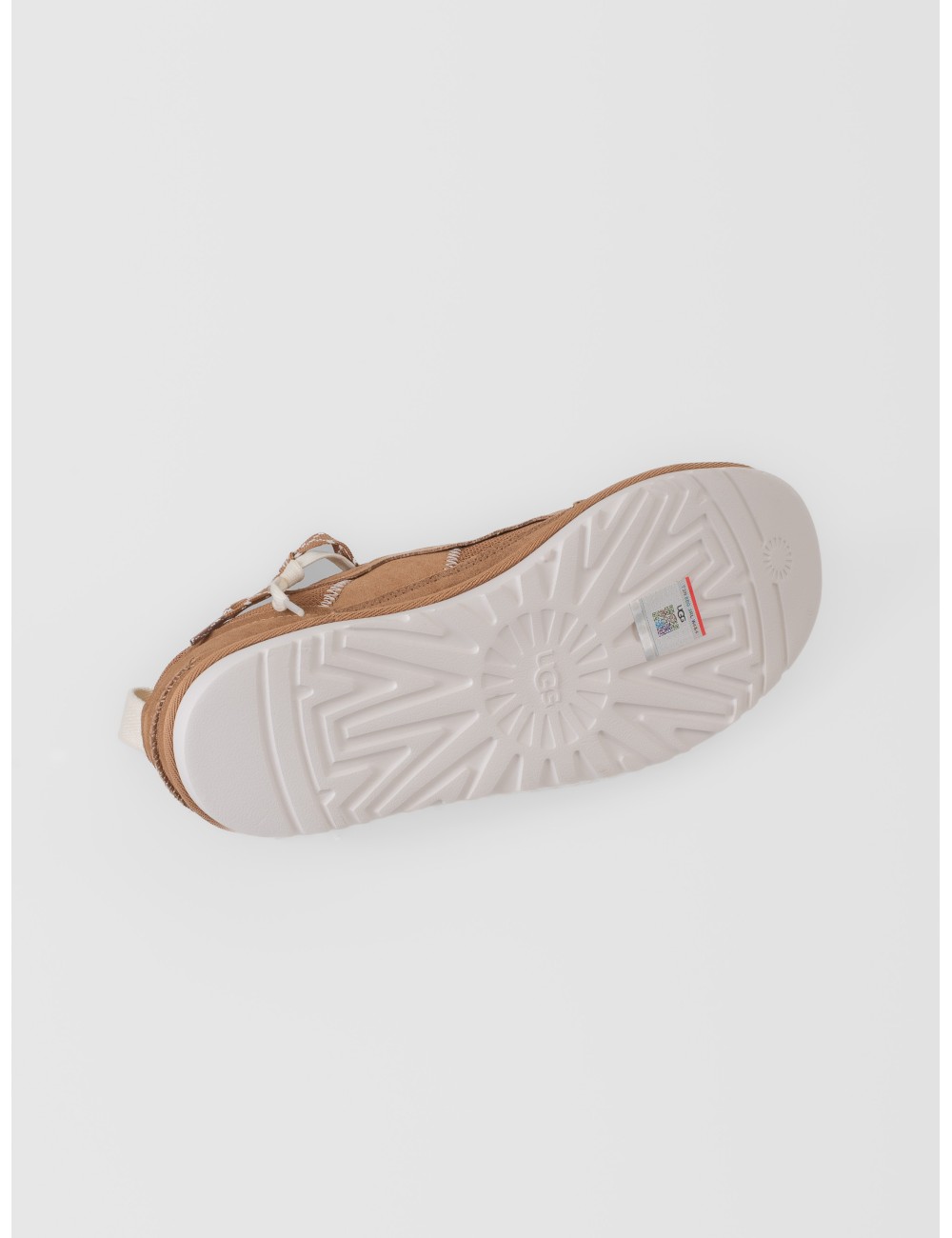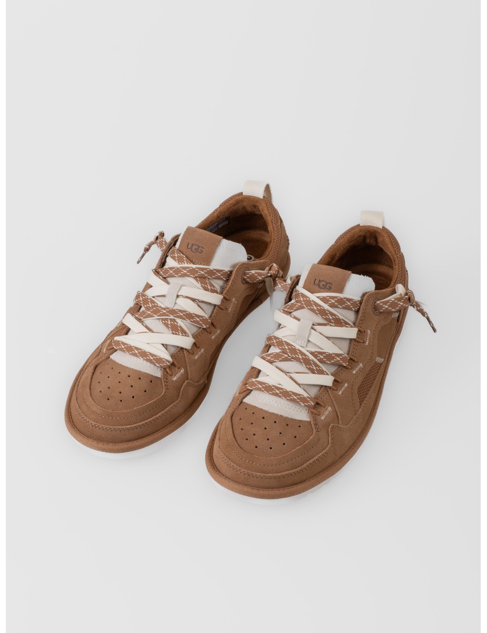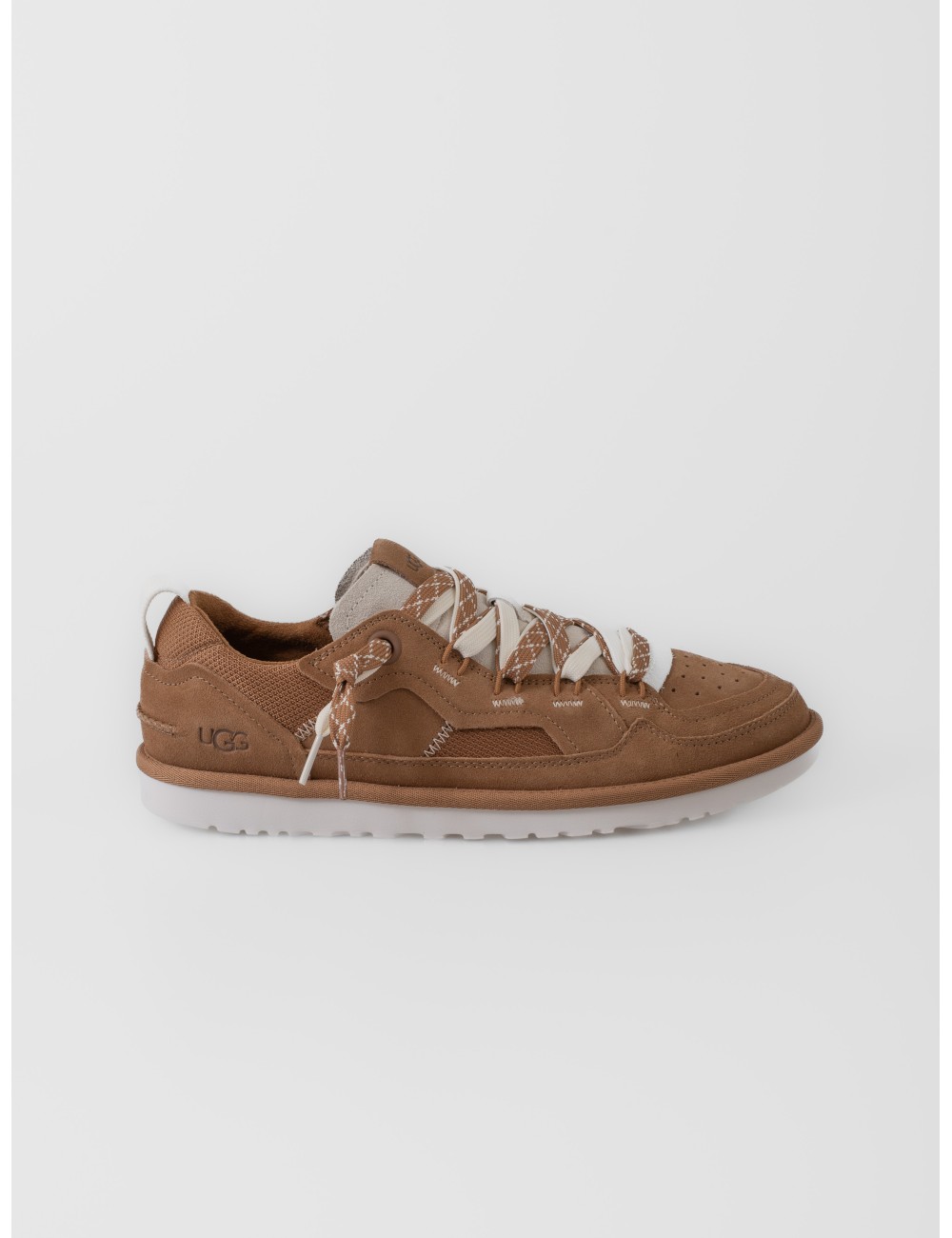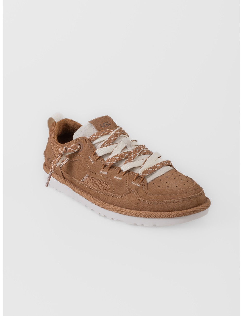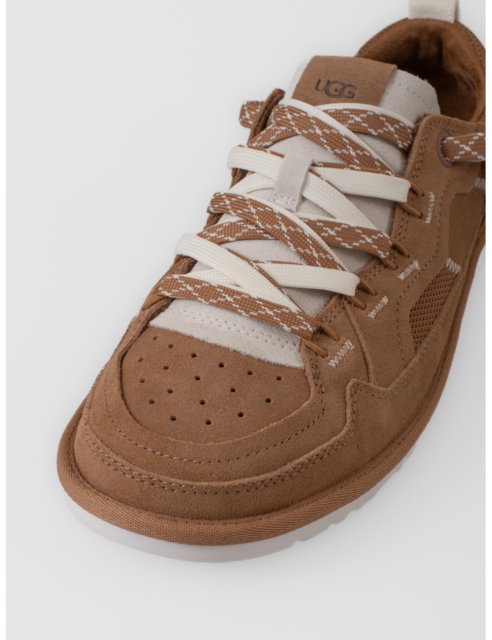 Zapatilla UGG Minimel en color chestnut con silueta de perfil bajo, doble sistema de cordones y suela ligera. Combina un empeine de mezcla de materiales con acabado en ante, paneles textiles y una construcción flexible pensada para el uso diario. La base de EVA de caña de azúcar refuerza la ligereza y acompaña su carácter urbano.